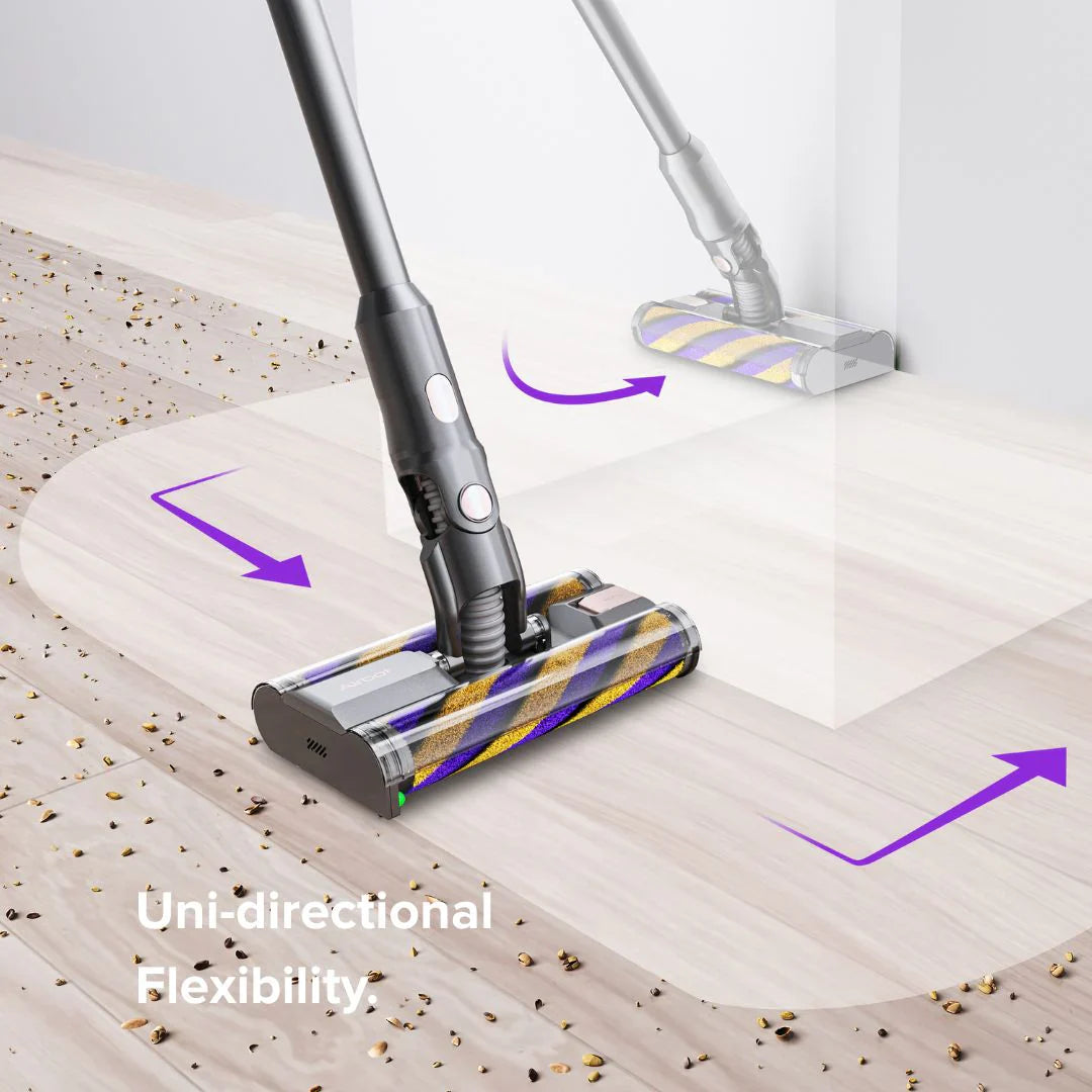 搭載 雙滾刷系統(Omnidirectional Dual Roller),可在不同角度與障礙物周圍高效吸塵,提升清潔表現。